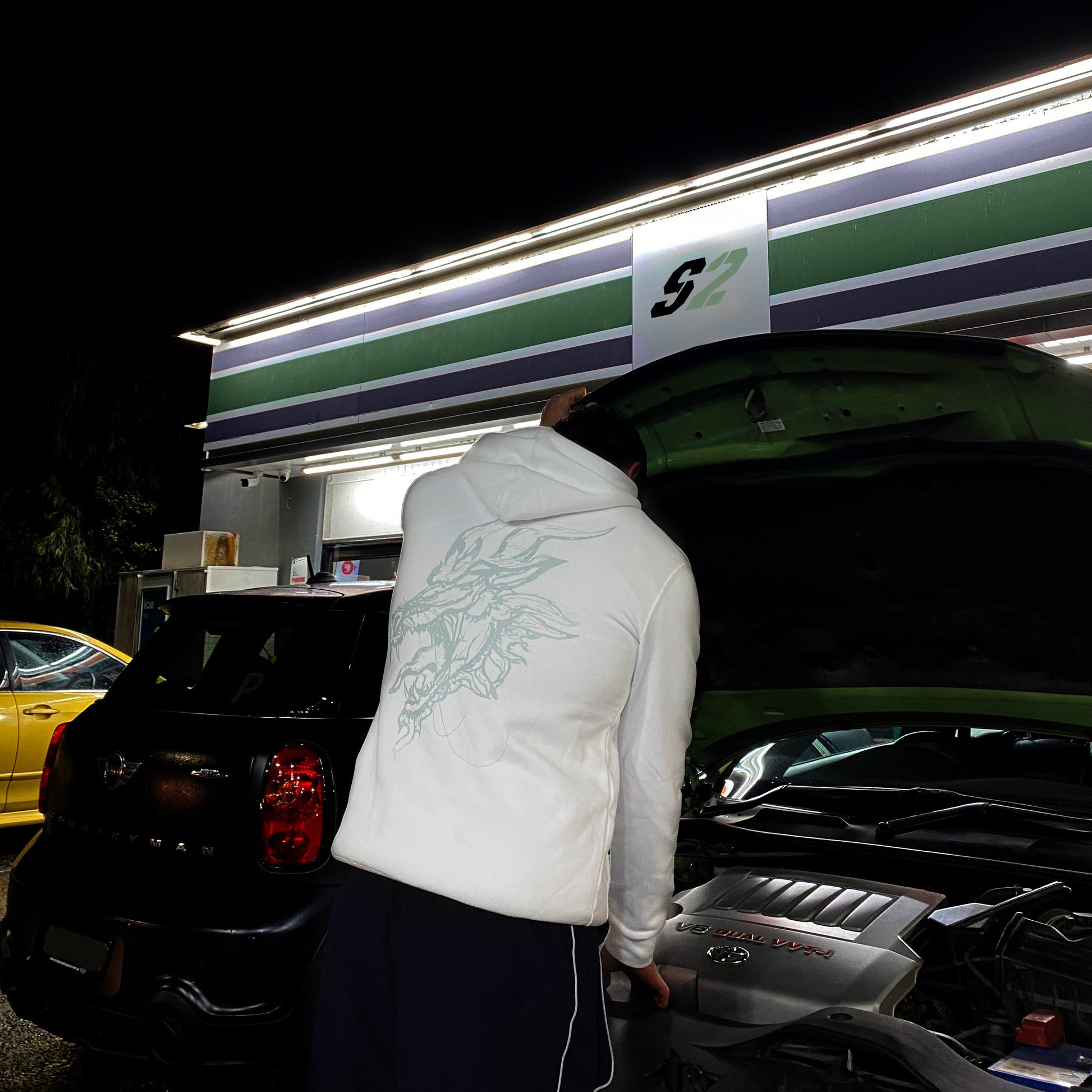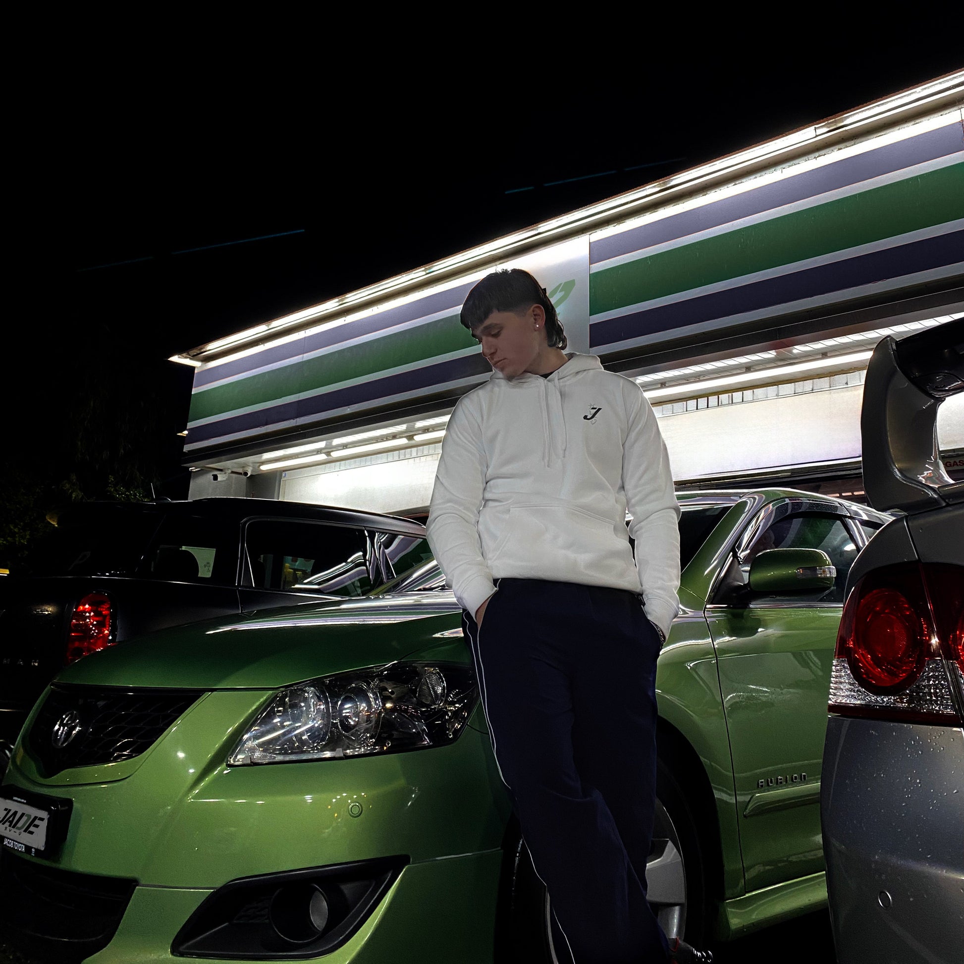 Step into the heart of garage culture with the Jade Dragon Hoodie, where streetwear meets authentic JDM spirit.